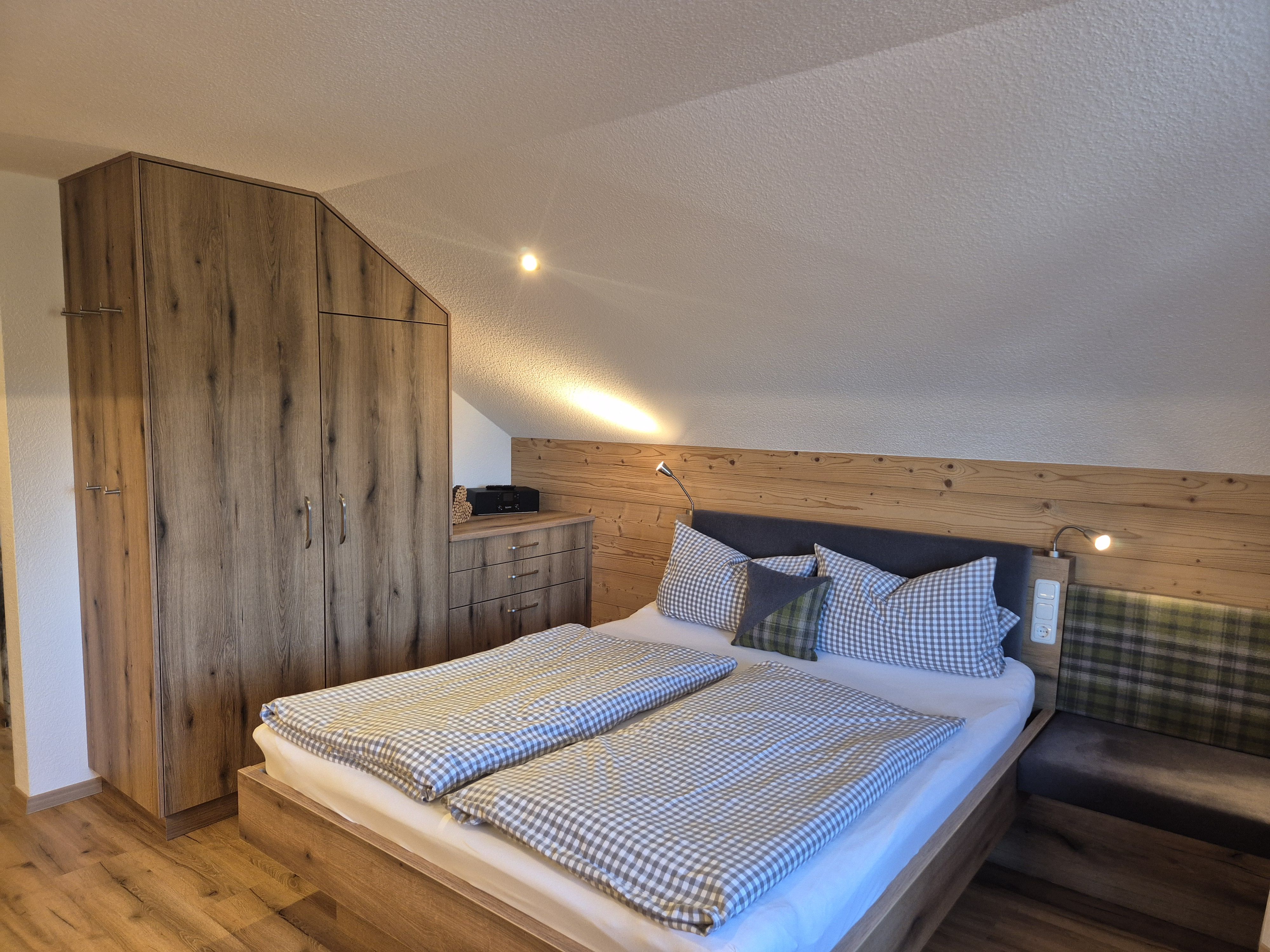 Elternschlafzimmer mit großem Doppelbett (200x200) und Zudecken in Übergröße