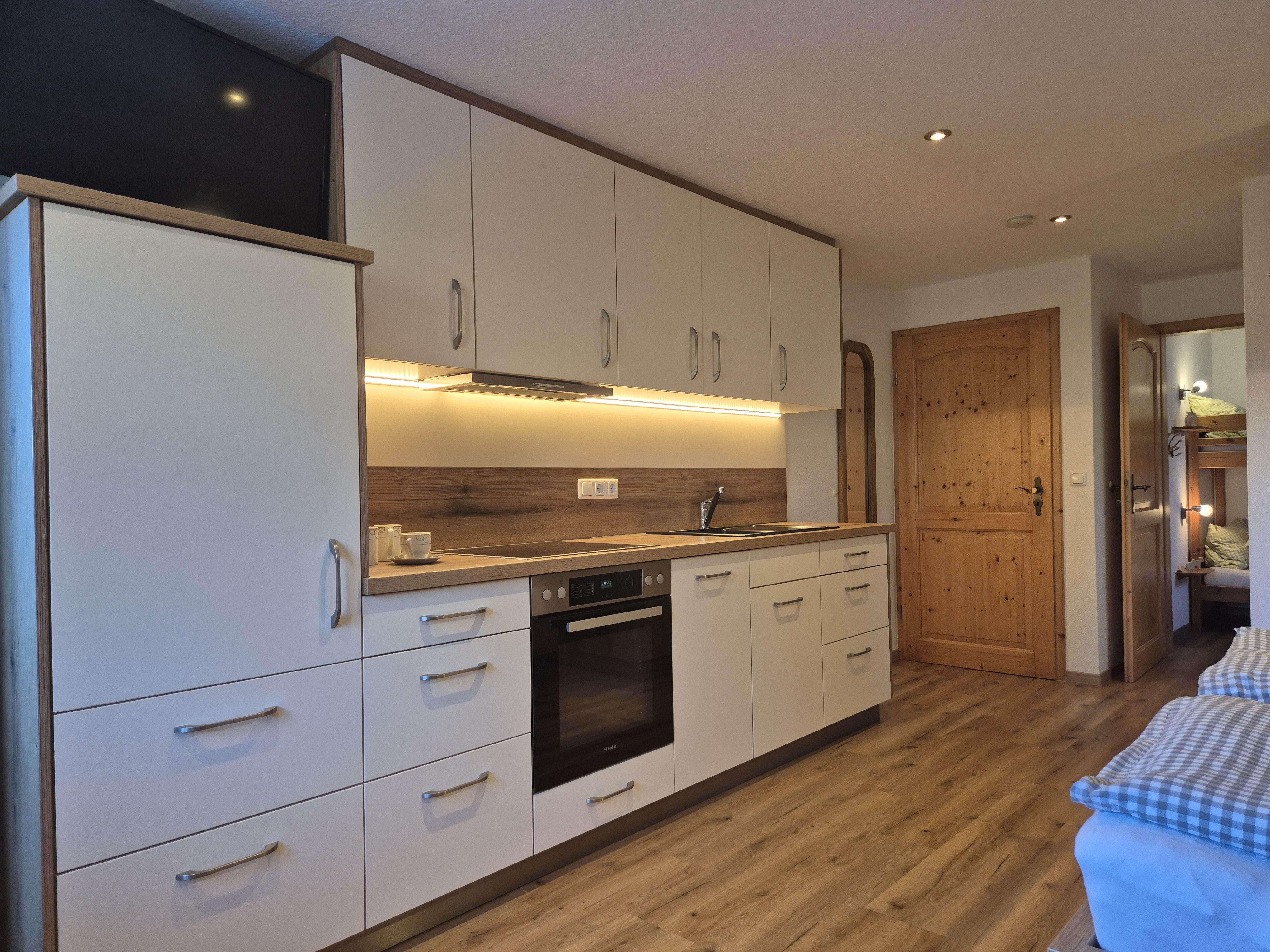sehr gut ausgestattete Küchenzeile mit Backofen, Kühlschrank mit Gefrierfach, Spülmaschine, Kaffeemaschine, Wasserkocher, Soda Stream